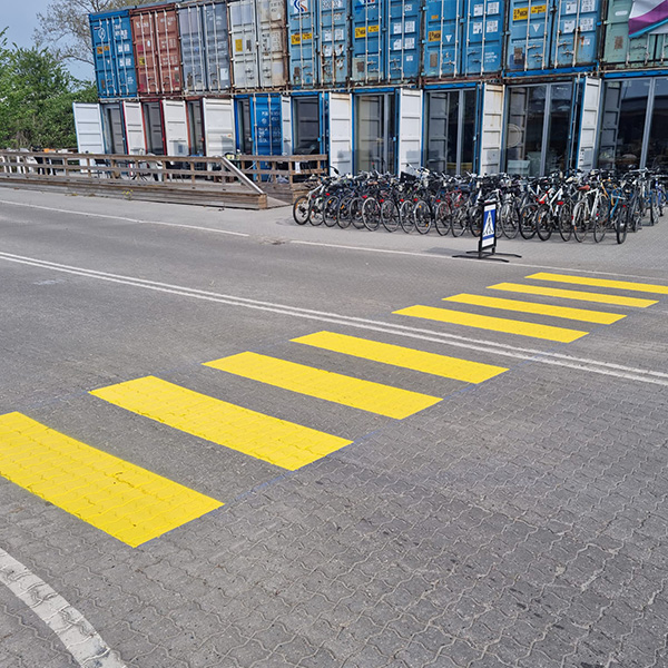 Vejstribemaling, udmærker sig ved at være en forholdsvis hurtig løsning og kan anvendes på alle faste underlag. Beton, køresten og asfalt. Ulempen er holdbarheden. Forvent ikke mere end maks 3 år.